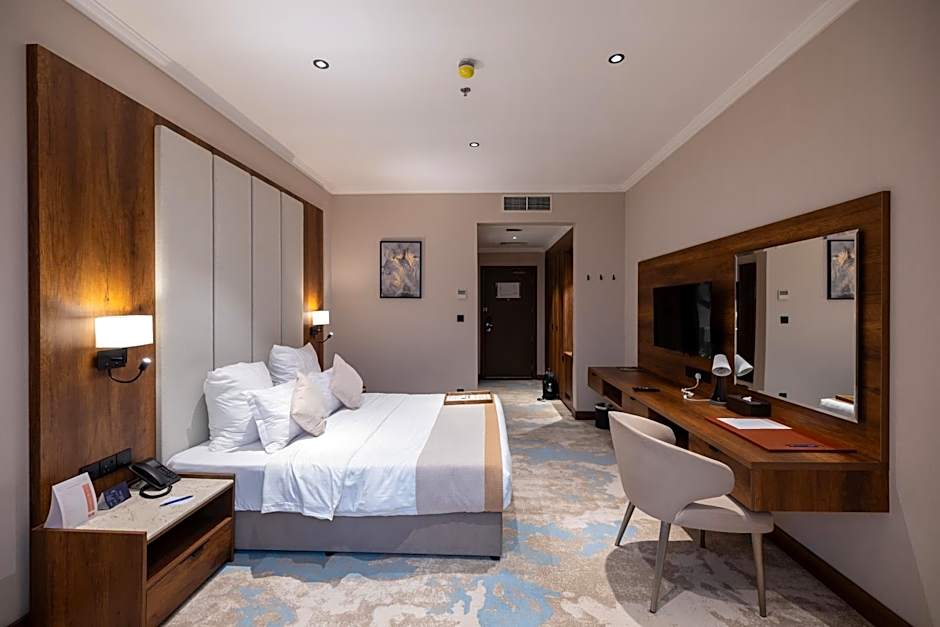 Featuring free Wi-Fi, this air-conditioned room is decorated with warm colors and carpeted floors. It includes a living room with a flat-screen satellite TV, a mini-bar and a kitchenette. The private bathroom comes with a bath, a shower and offers a hairdryer and free toiletries.