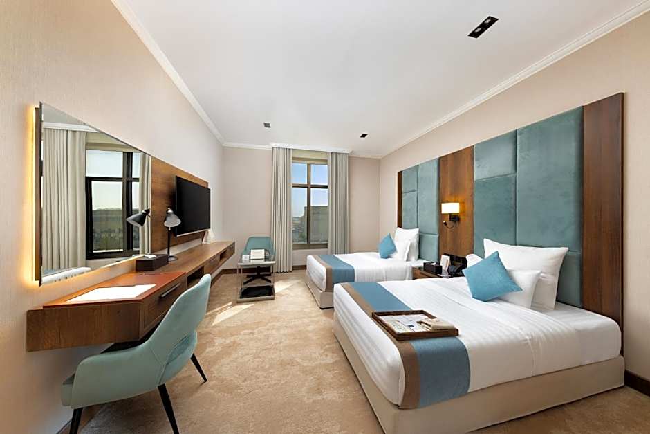 Featuring free Wi-Fi, this air-conditioned room is decorated with warm colors and carpeted floors. It includes 2 double beds, a living room with a flat-screen satellite TV, a mini-bar and a kitchenette. The private bathroom comes with a bath, a shower and offers a hairdryer and free toiletries.