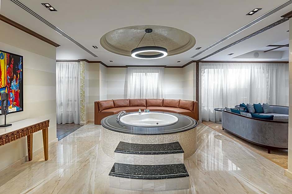 Featuring free Wi-Fi, this spacious, air-conditioned suite is decorated with warm colors and carpeted floors. It includes a living room with a flat-screen satellite TV, a mini-bar and a kitchen. The private bathroom comes with a bath, a shower and offers a hairdryer and free toiletries.